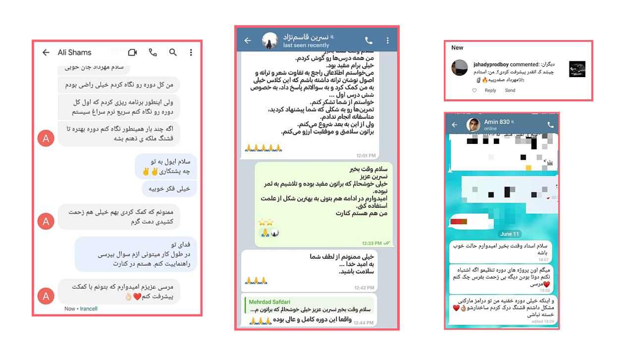 - مدت هاست که تعداد قابل توجهی از مراجعین را دیدم که از پرداخت هزینه های هنگفت به بعضی از افراد با اسامی آشنا و تا حدودی معروف گزارش دادند که پس از ثبت نام مباحث بسیار پیش پا افتاده را که در اینترنت به وفور در دسترس قرار دارد را ارائه کردند و در پایان نسبت به پولی که پرداخت شده علمی انتقال داده نشده.