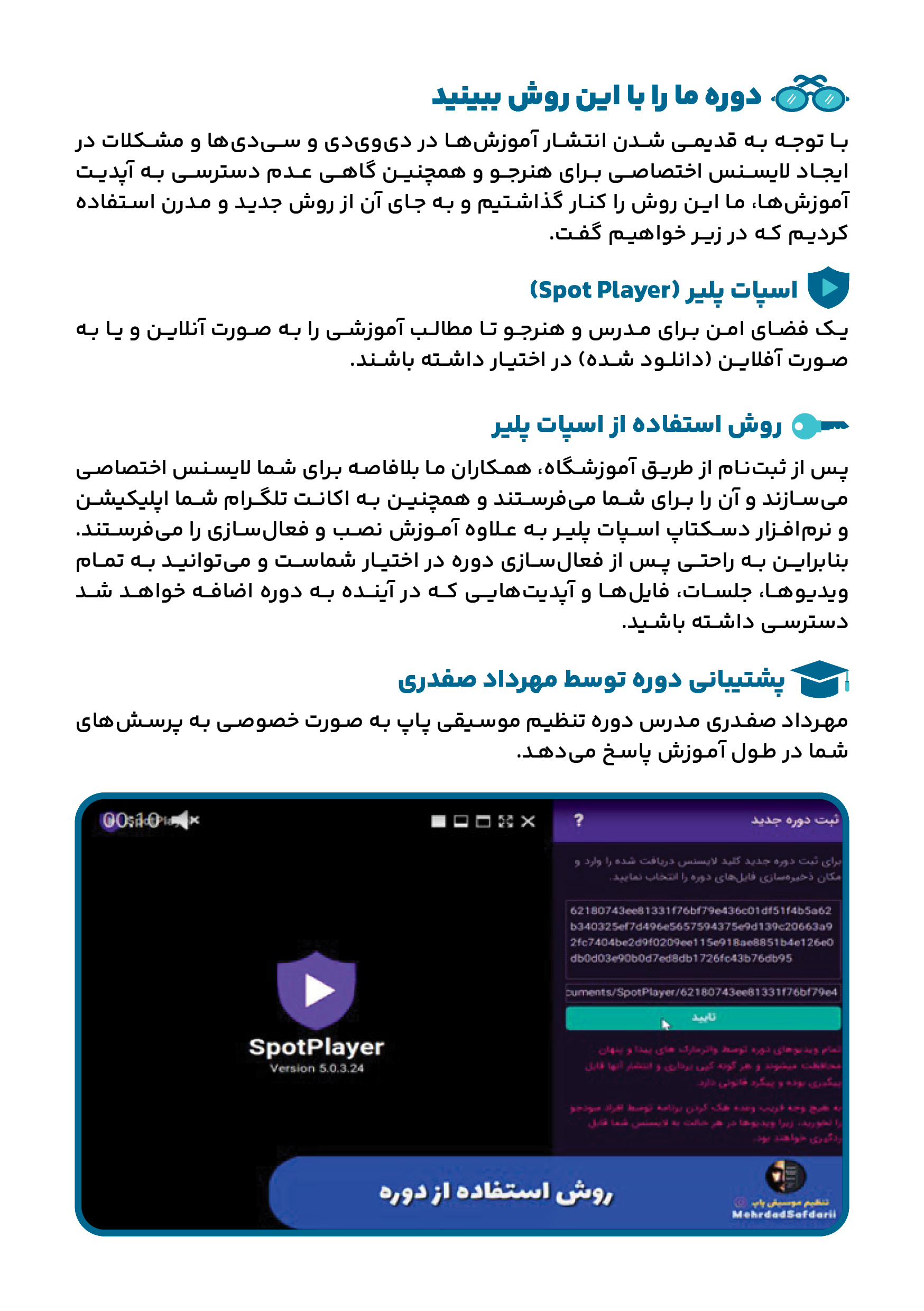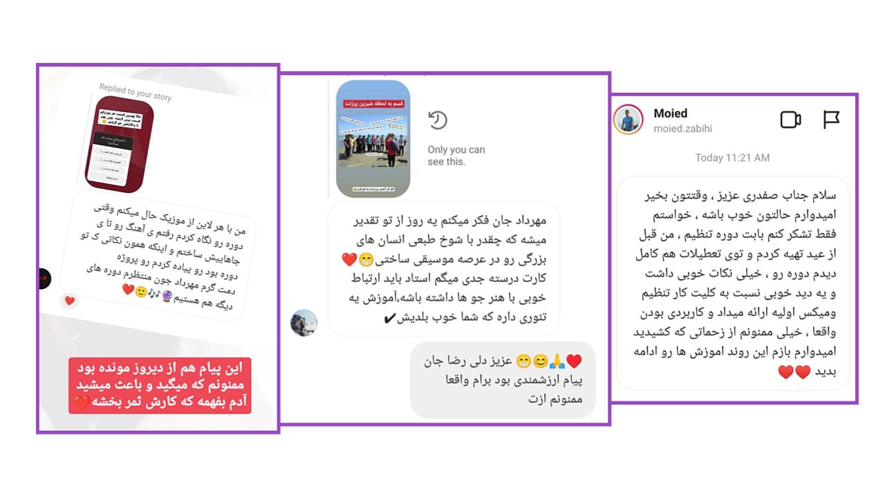 ما باید در انتخاب هایمان دقت کنیم. ممکن است یک برند و یک نام معروف در موسیقی در آموزش مهارت کافی را نداشته باشد. بنابراین به خوبی تحقیق کنید؛ کار ما آموزش است، ما سال ها مطالعه کردیم که چگونه با کمترین هزینه بهترین عملکرد را برای هنرجو رقم بزنیم.